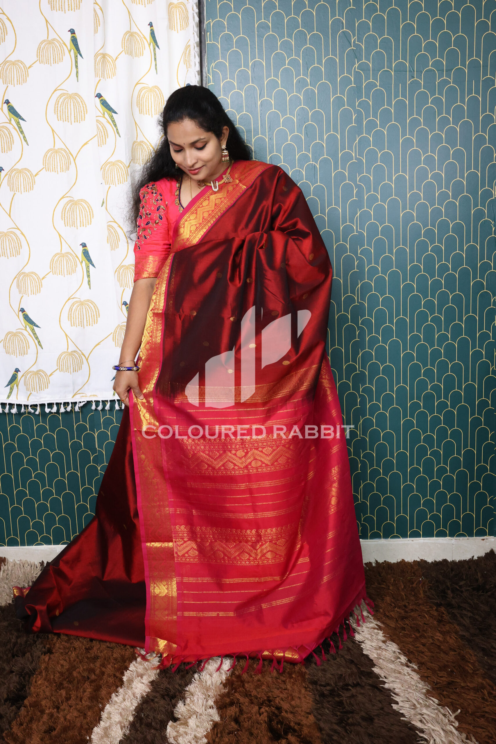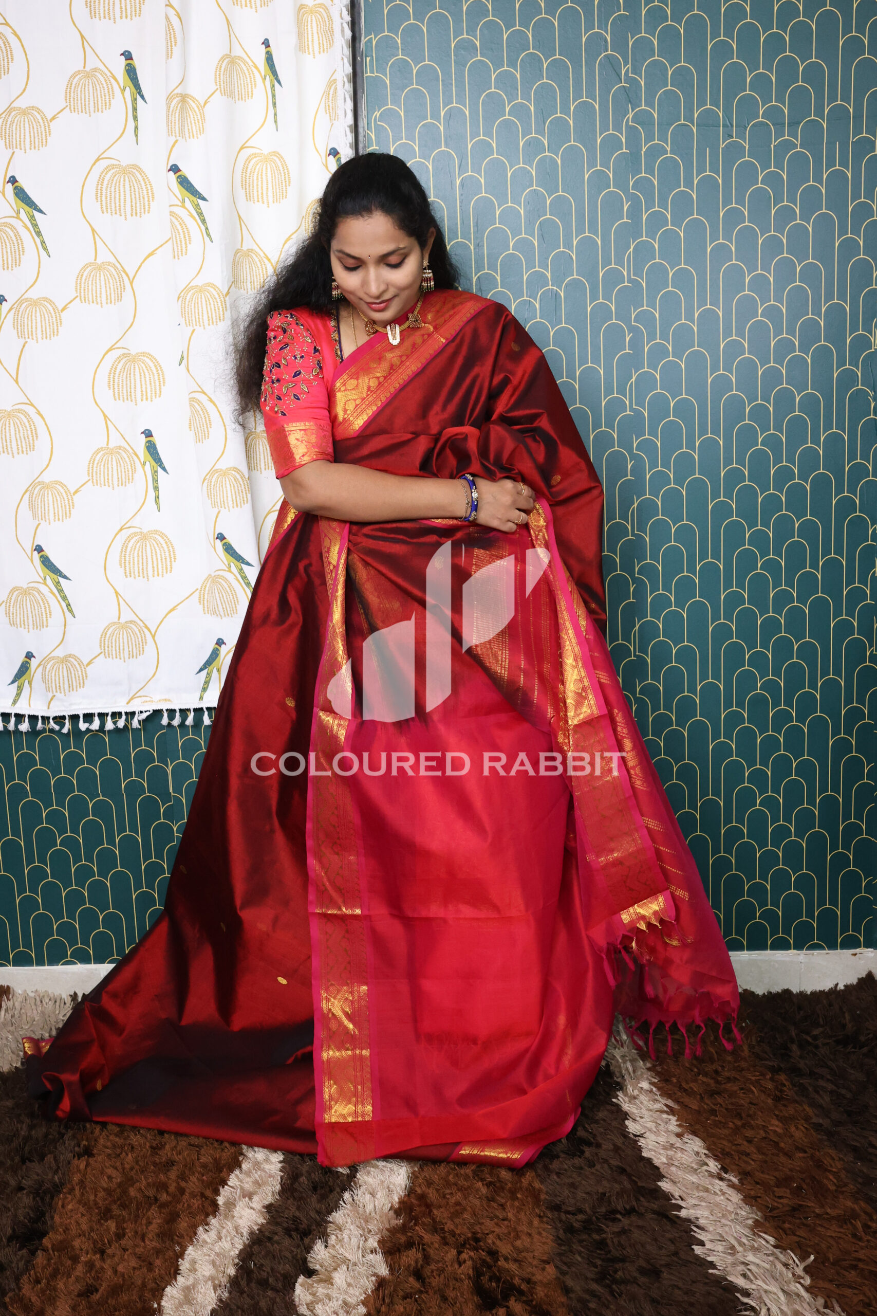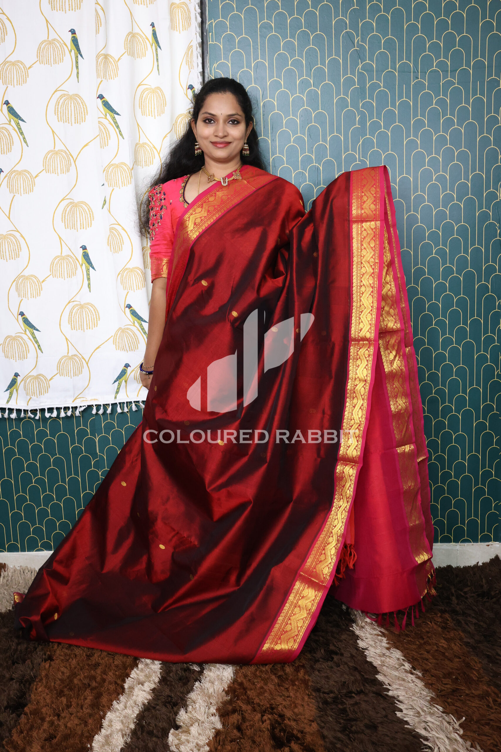 Kanjivaram Silk cotton coin motif saree – Royal Maroon