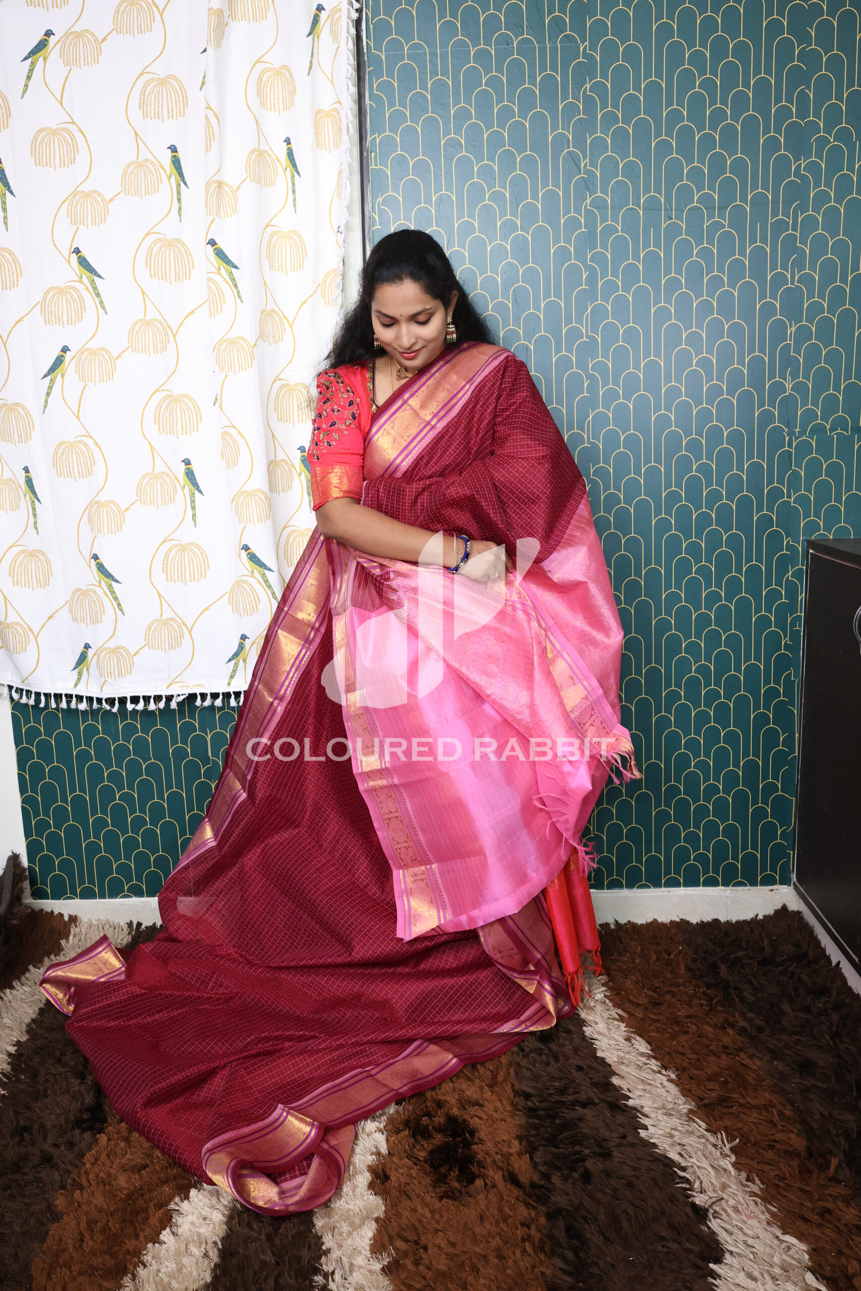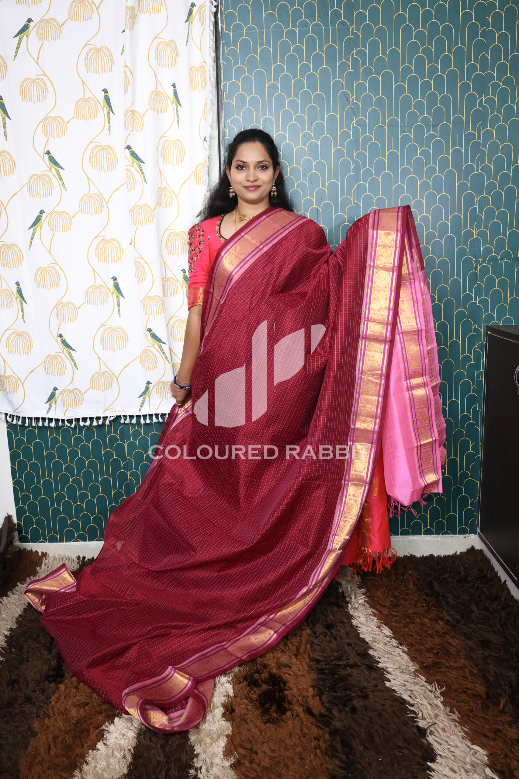 Kanjivaram Silk cotton Lakshadeepam saree – Aesthetic Maroon