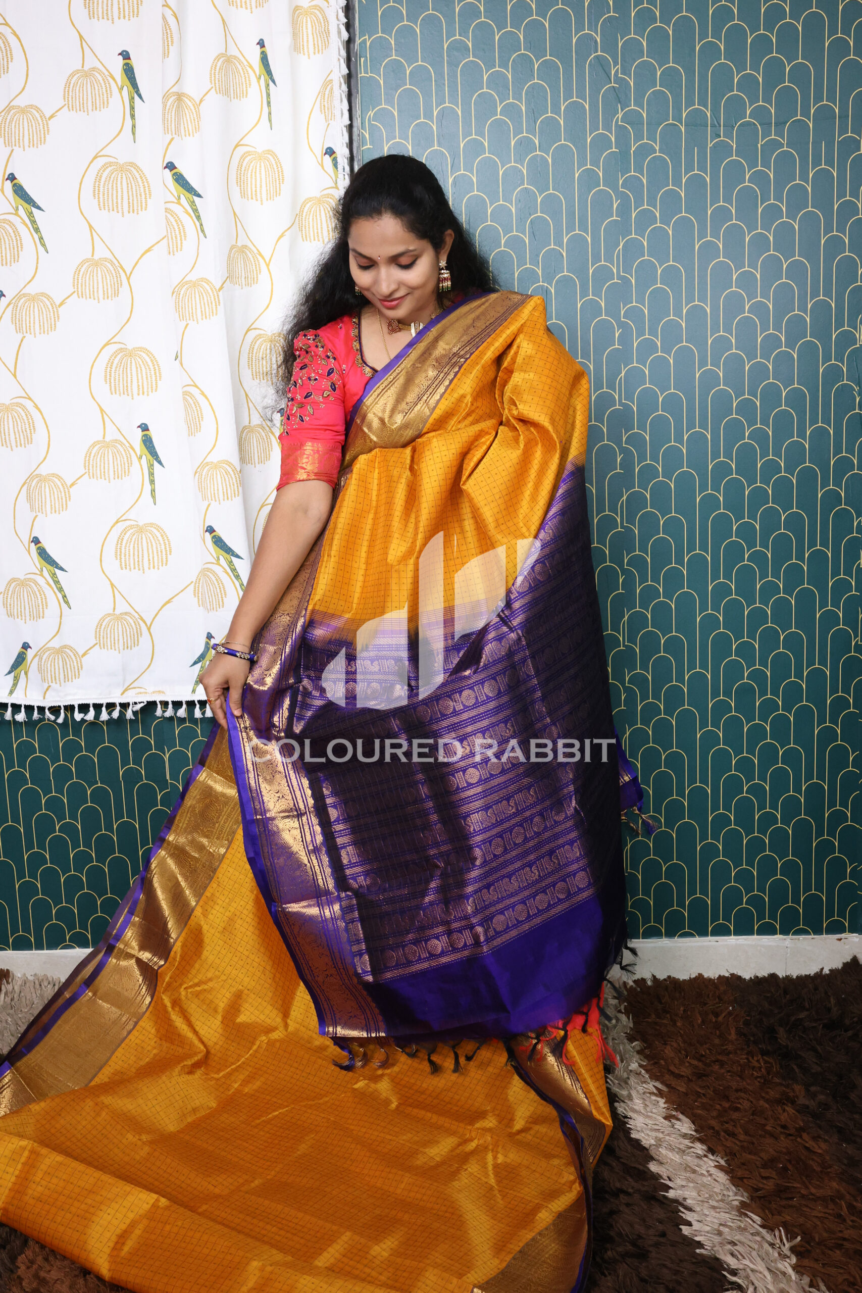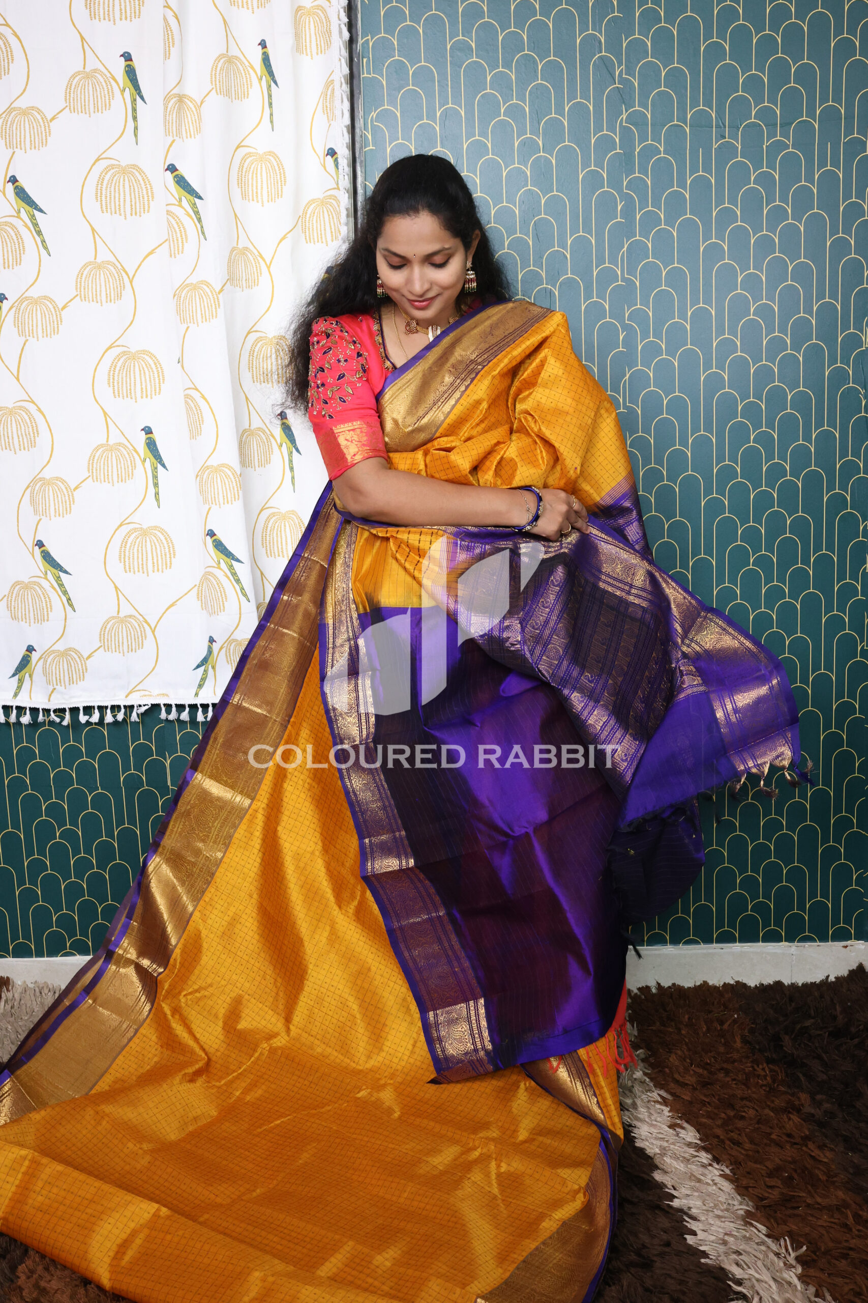 Kanjivaram Silk cotton Lakshadeepam saree – Canary Yellow