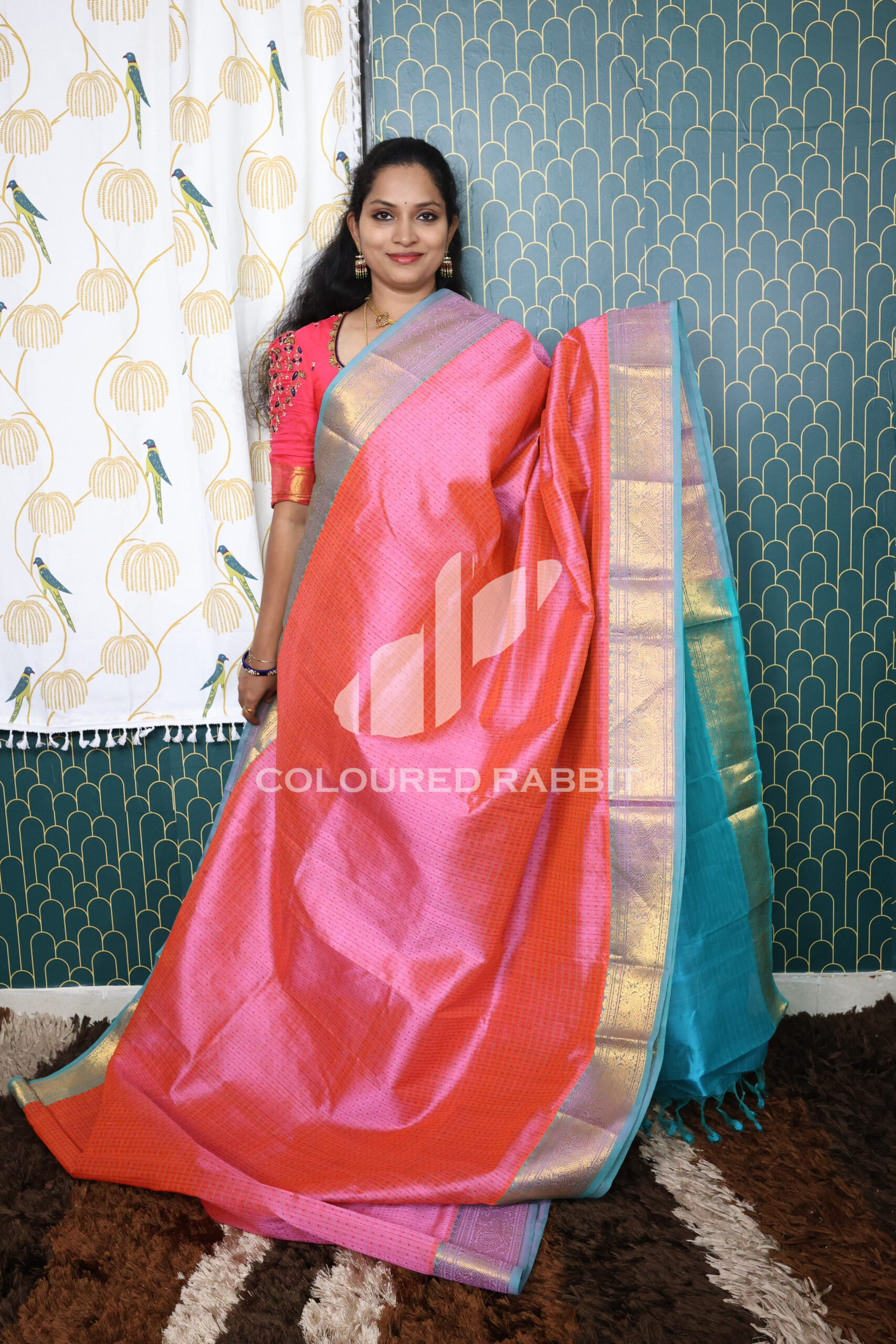 Kanjivaram Silk cotton Lakshadeepam saree – French Pink