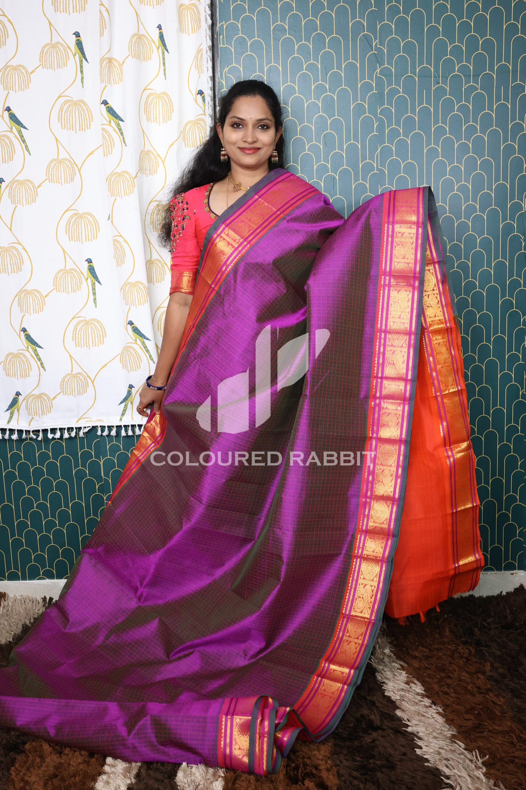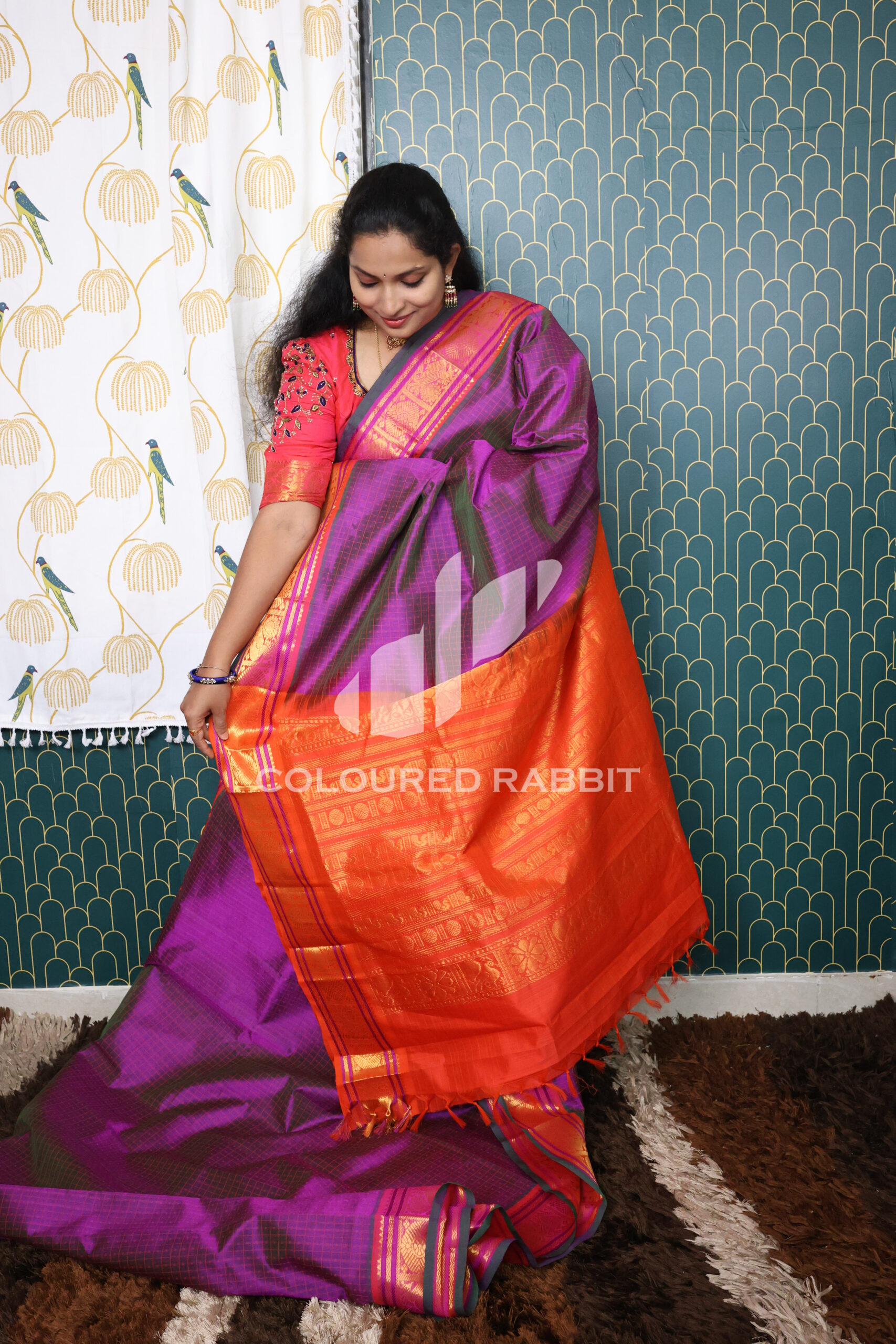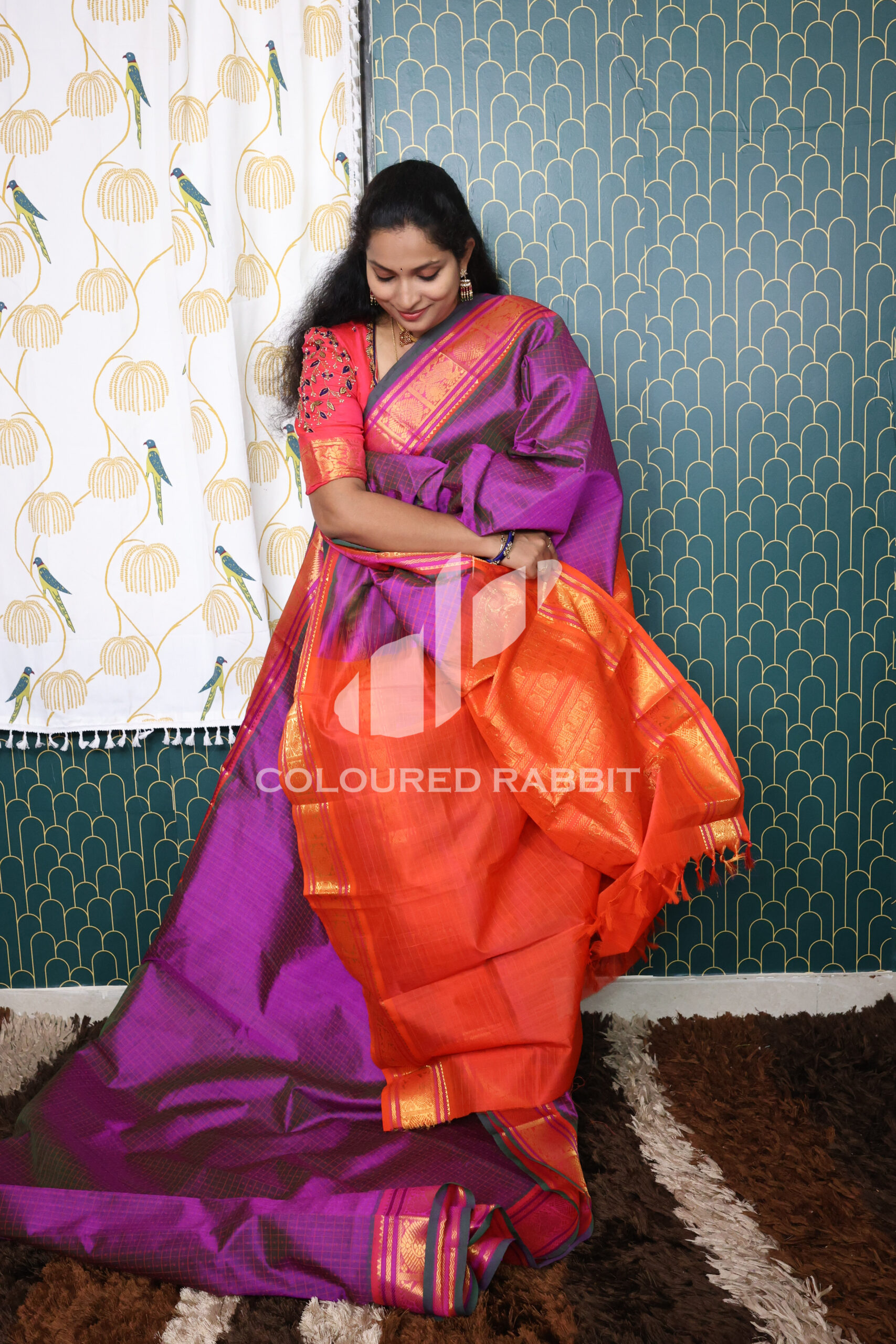 Kanjivaram Silk cotton Lakshadeepam saree – Magenta dual shade